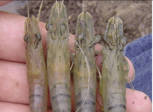 Infected shrimp show yellow or brown color in the gills, yellow in the head of the chest, the whole body is pale, swollen digestive glands make the head appear yellow. The disease causes high mortality, which can be up to 100% after 3 to 5 days of infection. PCR result positive for YHV/GAV.