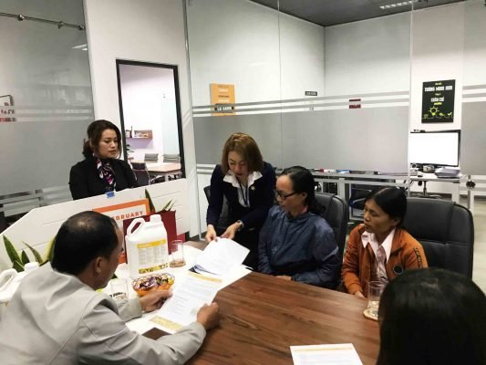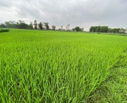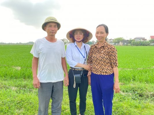Picture 4&5: Visiting the farmers and fields where OptiRice is applied.